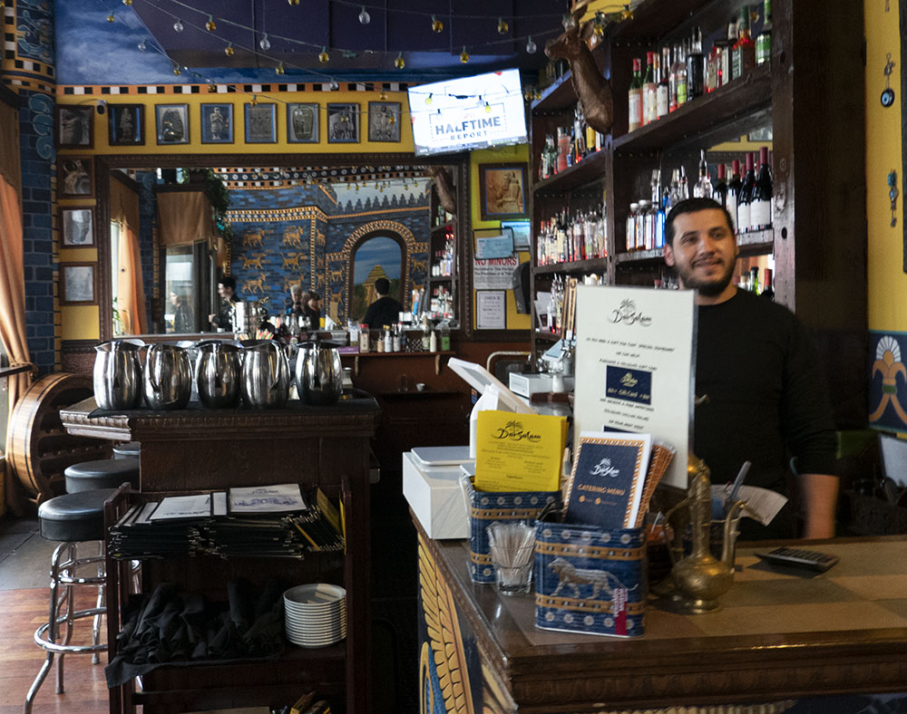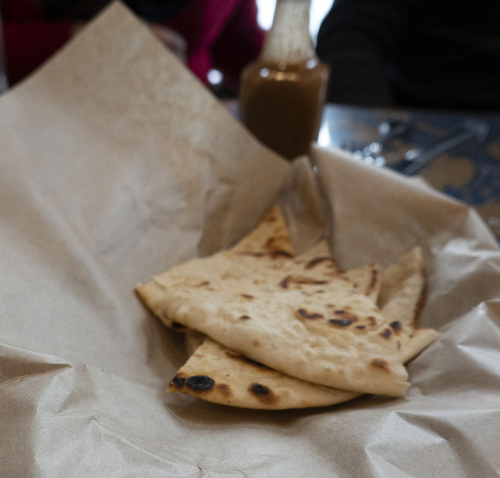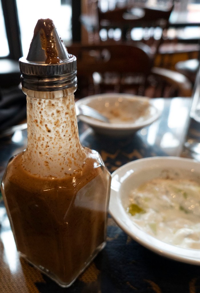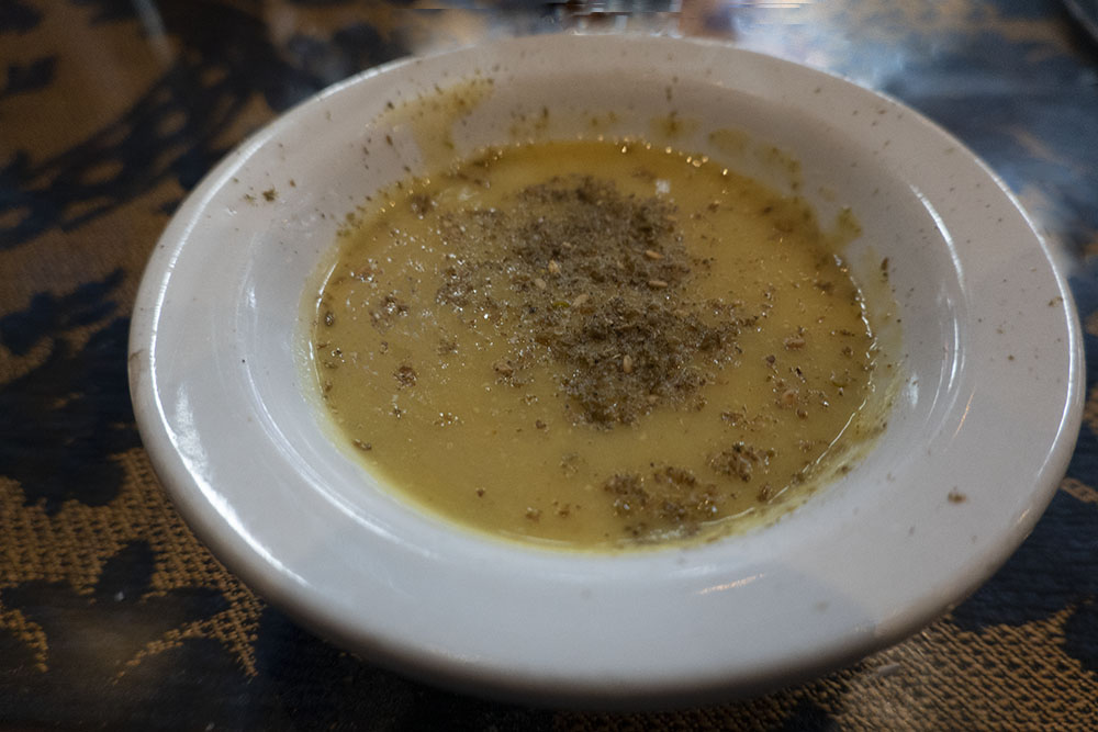 Our next stop was Dar Salam, an Iraqi Restaurant. Once again, I have never been to an Iraqi Restaurant. To start we had the Adis Soup (Curried Lentil Soup), some hummus which was made of chickpeas blended with tahini, lemon juice and garlic, garnished with paprika and olive oil. We were also served Tahziki, which is a yogurt blended with fresh garlic, lemon juice and cucumber and garnished with zaatar and olive oil. We had Baba Ghanoush as well. This Baba Ghanoush was a very smokey roasted eggplant ground with tahini, garlic and lemon juice. We also had two pieces of fafalel on a bed of rice. Da Salam’s pita bread was outstanding! There was a big run on the pita bread by the tour group.