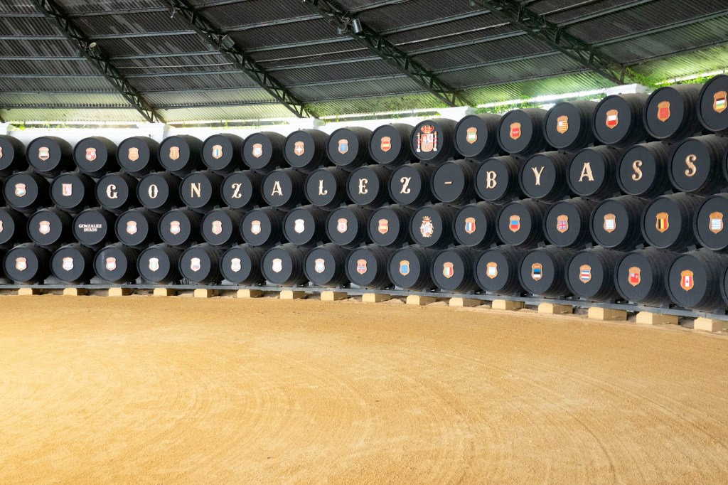 Sherry is a fortified white wine . Usually the white wine is fortified with a spirit like brandy. This company has been in the Gonzalez family forever. The reason that the name Byass was on the casks was because this Englishman popularized this drink in throughout Europe and was a great promoter. He also owned part of the company.