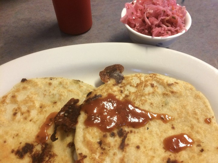 Restaurant El Salvadoreño has authentic Central American Cuisine . We had pupusas which are corn tortillas filled with one or more fillings that are a traditional dish of El Salvador.