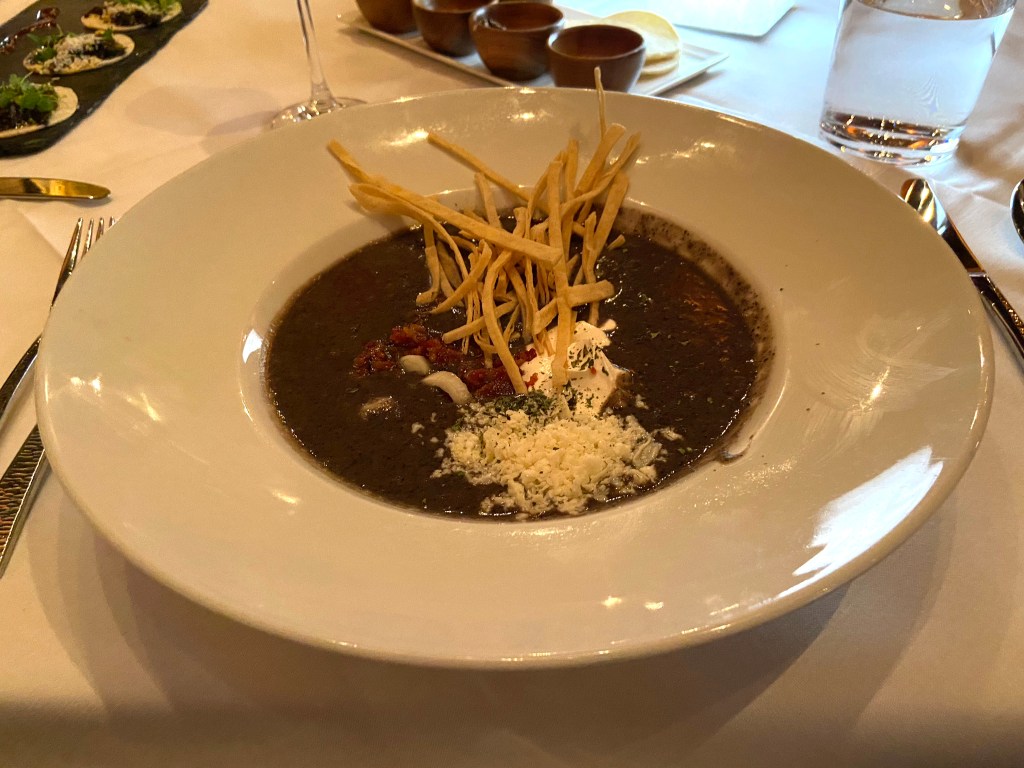 I started out with the black bean soup which has some real bacon in it and on top of it. I thought I could eat around the bacon but I wasn’t very good at that. You see this was my favorite soup when I ate meat. I am sad to say that I will not be eating that soup again. It is truly wonderful if you are a meat eater not so much for me. My better half had the xochimilco which is hutitacoche(corn mold) served with tiny tortillas. Huitacoche considered a delicacy, I think that it is delicious. We also had an incredible shrimp cocktail with a lovely sauce. It was so wonderful.