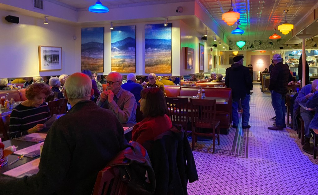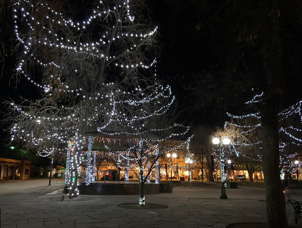 I was also very happy that I had my first ever stuffed sopaipilla here. The Plaza Cafe is all so very historic. The Plaza Cafe dates back to 1905. It is the oldest restaurant in Santa Fe. But its food is always delicious and dependable. That’s why I chose to have my first stuffed sopaipilla here. As always, I ordered Christmas as my chile choice (a combination of red and green). The menu advises you that their chile is hot because it is. I am used to eating hot chile but for tourists this was a nice precaution. A Sopaipilla is fried quick bread. I got mine stuffed with calabacitas ( zucchini and summer squash with onions). The Sopaipilla was topped with lots of melted cheese (12.95)*. It was served with some of the best beans I have ever had as well as some of the best rice I have ever tasted. I think I could have had just the beans and rice and I would have been incredibly happy. Wow! What a good meal.