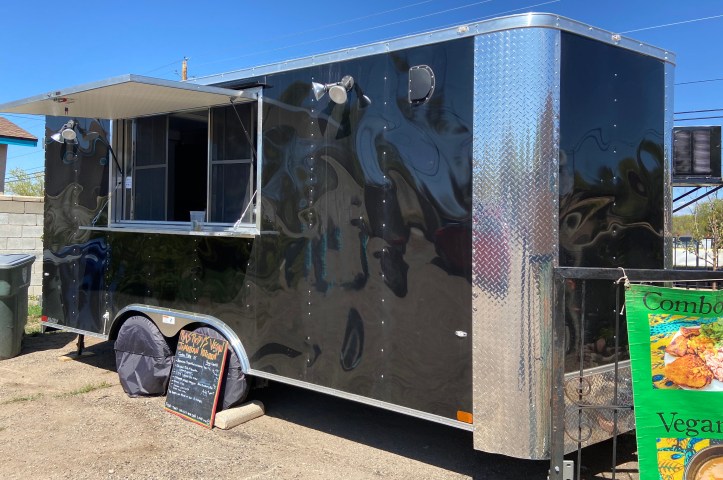 We were on an errand to get dog food at Critters and Me. On Agua Fria across the street, we saw the sign attached to the fence that read Jamaican Vegan Food. We were intrigued. I hadn’t read anything about a new food truck in town. It was also vegan!!!! Even though I am not a vegan, I really enjoy good vegan food. Believe me this is delicious vegan food and it is Jamaican, too.
