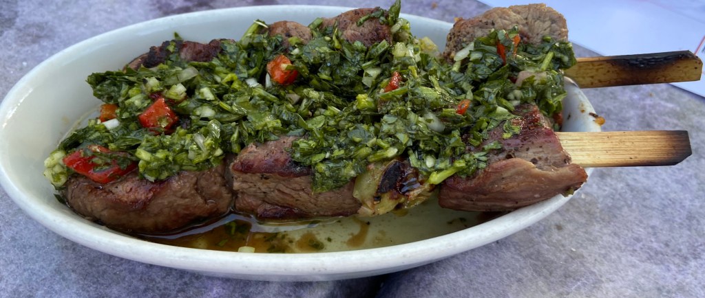 Our friend had the Lanza de carne (13)(Angus Beef Skewers with pearl onions and heirloom cherry tomatoes with a chimichurri sauce. It looked so good. We were told it was as good as it looked. It was amazing!