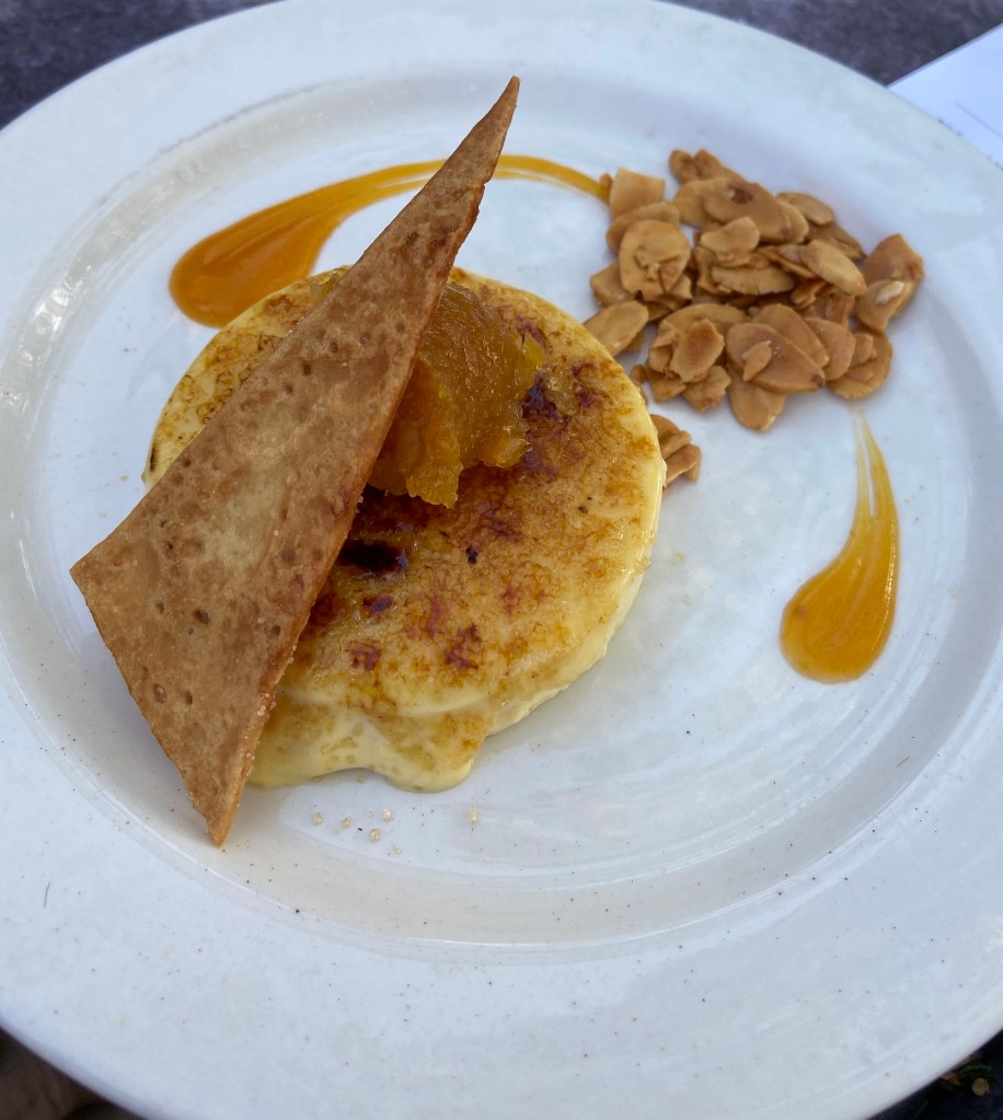 For dessert we had the crema catalana(8) which is a traditional custard with brandy apricot preserves, sweet orange and olive oil torta and candied almonds(you can also get the gluten free option). This was a very beautiful and delicious dessert. As well as the churros(8) on chocolate which were the traditional fried dough dusted with cinnamon and sugar with a rich drinking chocolate and whipped cream. It looked delicious as well!