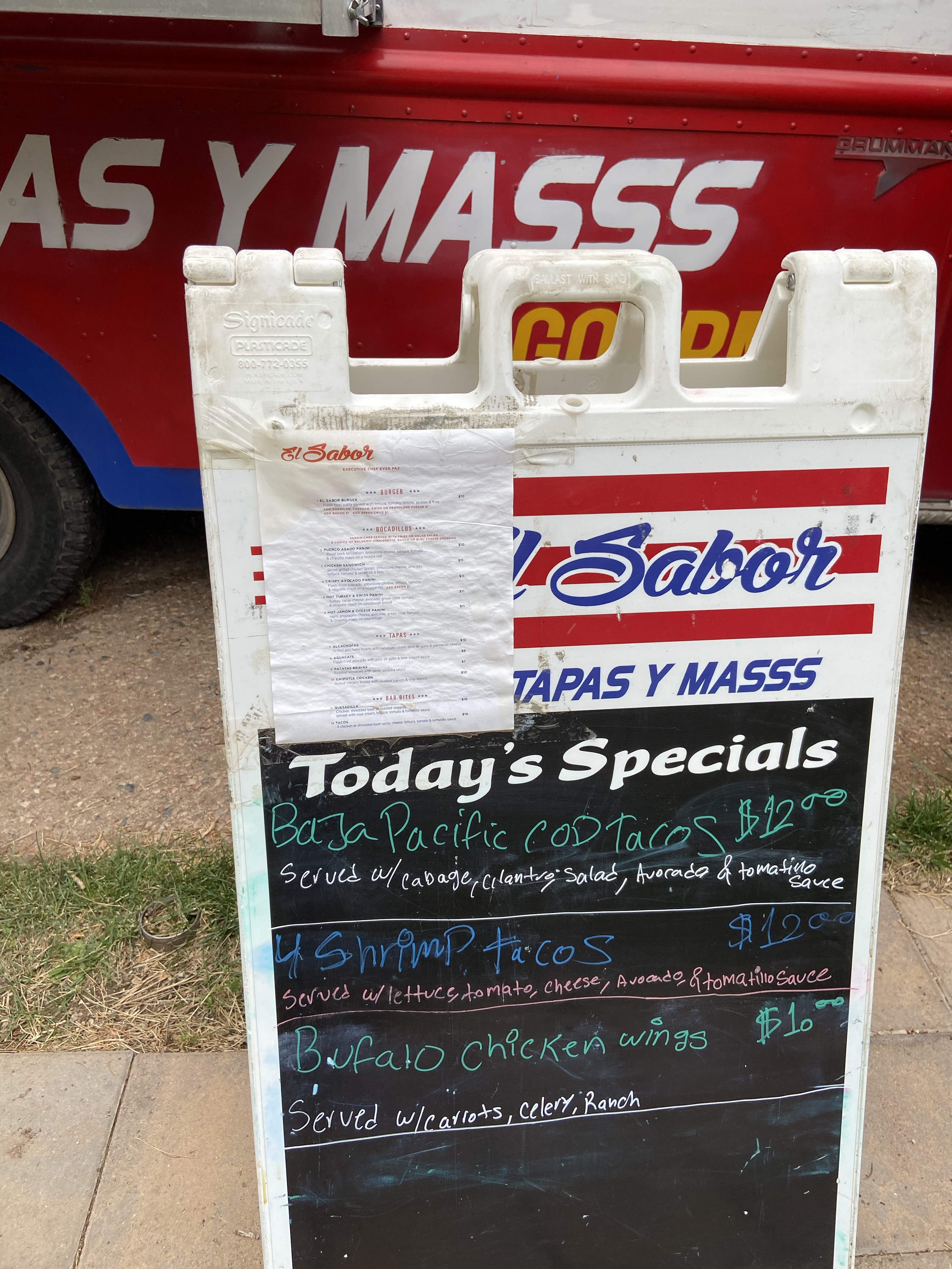 This is my favorite new place to eat. I realize that I have been missing out. I have wanted to eat here for a long time but this food truck was parked on Old Santa Fe Trail and Paseo de Peralta. I never seemed to have been in that area when I was hungry. The El Sabor Tapas y Mas food truck moved to Santa Fe Brewing on Fireplace Rd. This location is only 15 minutes from my house. I have been here twice in the last couple of weeks. The reason is that the food is fantastic! I love it. I think that Chef Ever Paz previously worked at El Farol. So we have a world class chef doing his own food truck! Excellent for us!!!