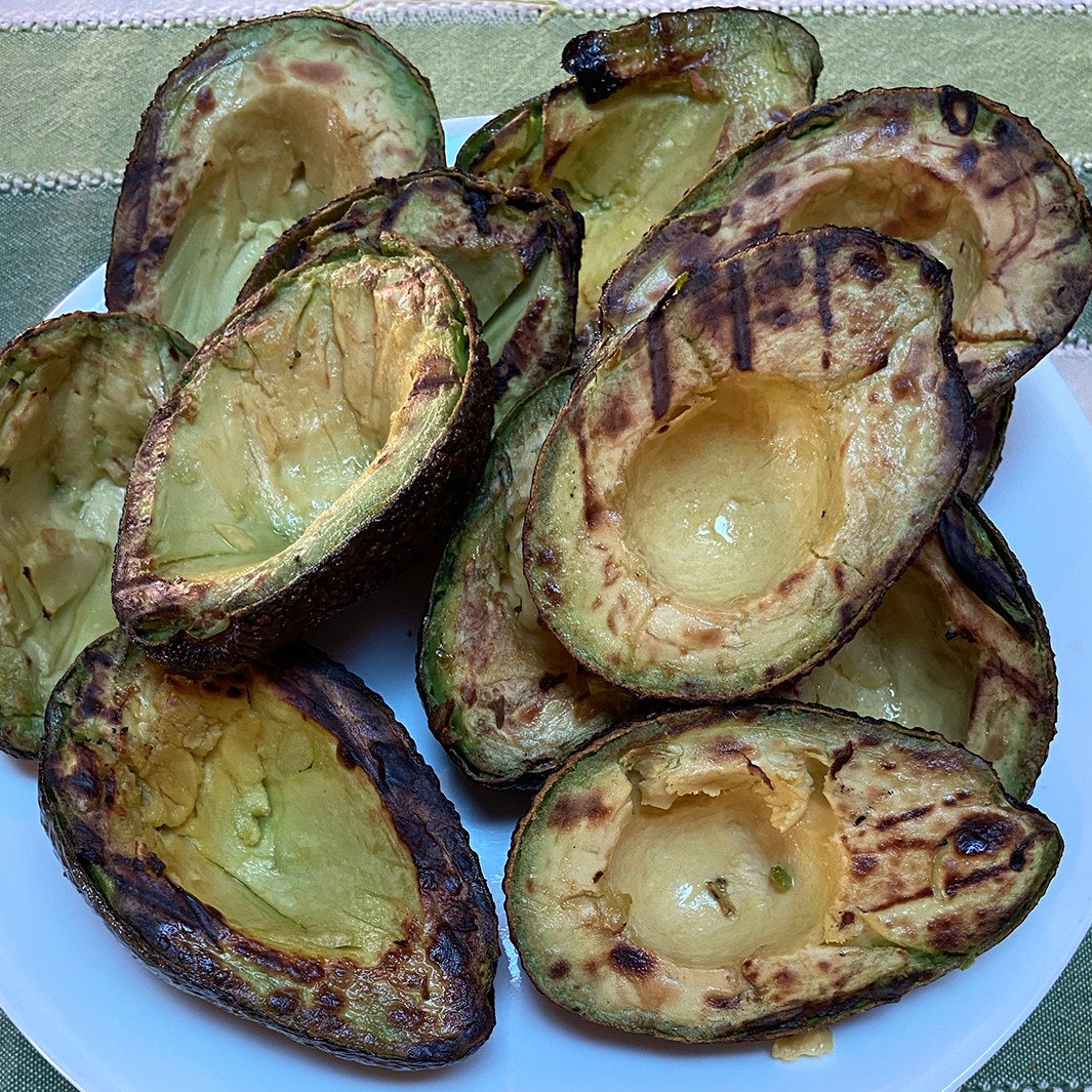 So I read and followed the recipe. We brushed the avocados with olive oil and drizzled freshly squeezed lemon juice on the avocados. Because some of the avocados were not as ripe as others, I had to adjust the 2 to 3 minutes grilling time on each side. I upped that amount of time to 4 or in some cases 5 minutes. I tried to get those nice grill marks that were shown in the recipe. I think I will be able to do better next time.