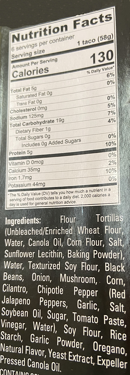 I think that because the tortilla was made in a factory that the tortilla wasn’t filled to the edge with pea protein. Some of the pea protein was very chewy but not bad. A serving size for me would be the 2 enchiladas. One enchilada for lunch or dinner just wouldn’t do it. The convenience of this product was a huge factor. My total description of this meal was ok but I can get much better vegan tamales at Posa’s or vegan enchiladas at Fiesta Oaxaca. Nice Try, Starlite Cuisine.