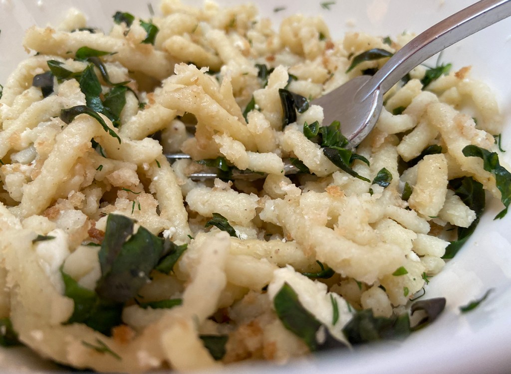 We also tried out her dinner rolls. They, too, are totally incredible. If you have a special occasion or a fan of dinner rolls this one is a must try. The dinner roll( bag of 12 for 7.20 plus tax) was light and delightful. We also tried the spaetzle(4.50). How could you resist? We brought it home and added our own basil and dill. It was a very tasty and fresh lunch. The star of course was the freshly made spaetzle.