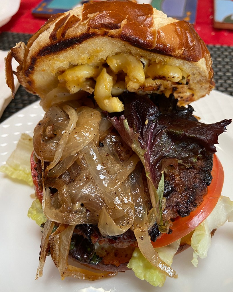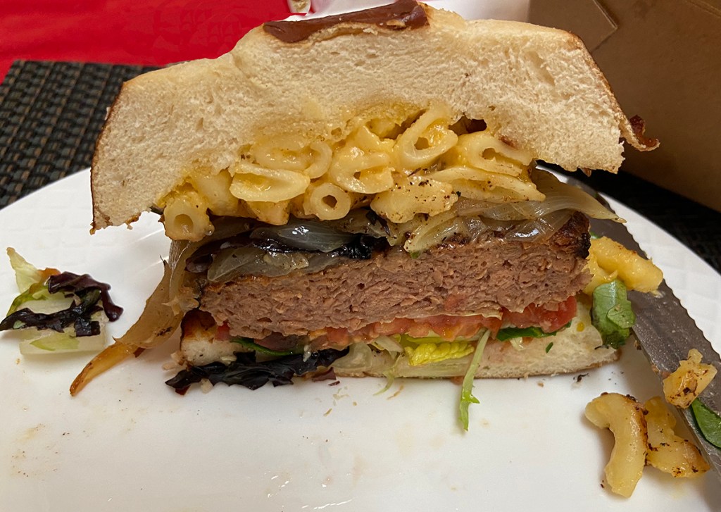 This Impossible Burger had lettuce, tomato, caramelized onion, and vegan mac and cheese. What a burst of flavor!