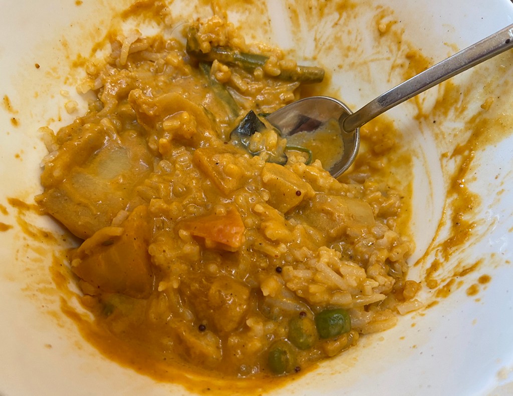 I love rasam. It is one of my favorite soups. The spices are delightful. The soup itself is hot. Rasam is made with blended lentils, cilantro, tomatoes, and spices. It is Gluten-free and vegan. I didn’t know that. What a delicious soup. Sorry, I was very hungry so I started eating before I took these photos.