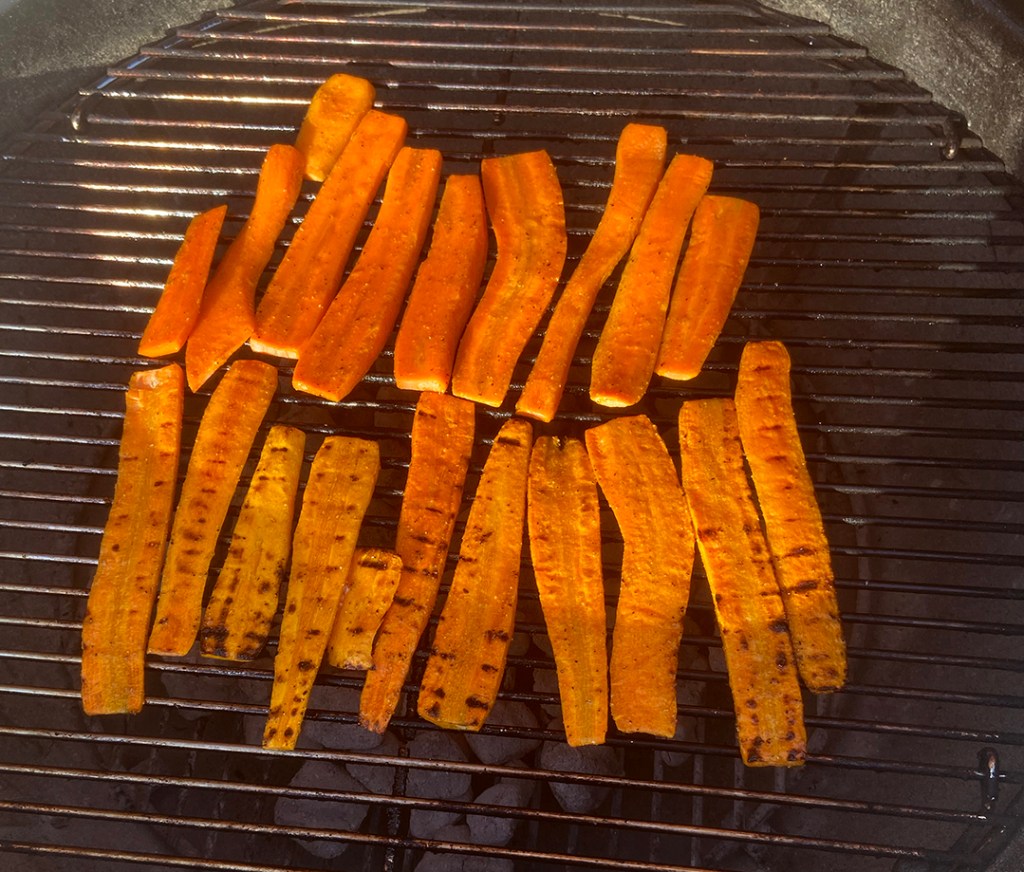 I started with carrots. Always a favorite of mine, these particular carrots have olive oil, and some spices like Sunny Singapore (which is a version of lemon pepper without salt) from Penzey’s Spices.