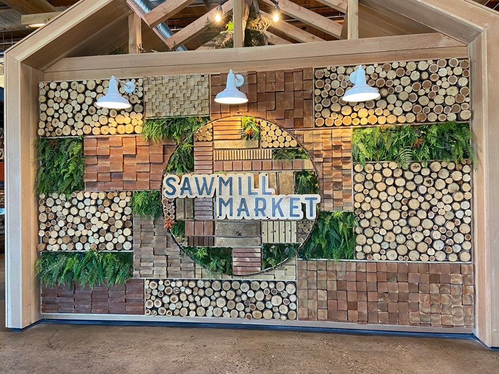 Sawmill Market was actually used as a sawmill before this beautiful building was turned into a food hall. The wood work was very impressive. There were several people that were gave helpful directions as to where restaurants were. They were also enforcing the mask order and the limited number of people who could enter the food hall. There were many places to sit. You have a choice of eating inside or outside. Several people were sitting outside.