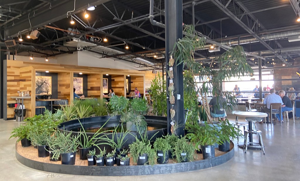 This is the inside of Opuntia. It was a beautiful setting with a koi pond in the middle of the restaurant. The windows to the east have a view of the Santa Fe Railyard. It is located above the parking garage. We got there just before 12 and beat the lunchtime crowd. There was a long line. This is a very popular place. It was also very warm. Several portable air conditioners were doing the best they could to make the space cool.