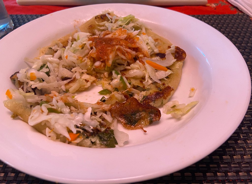 We had three vegetarian choices, frijoles, queso, and vegetables, spinach and cheese, and squash and cheese. We had 2 spinach and cheese and the squash and cheese pupusas. All these wonderful pupusas were 2.50 a piece.