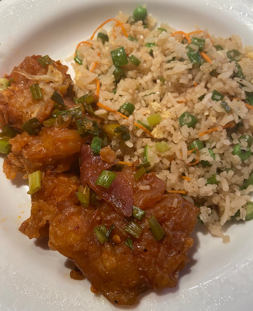 Vegetable Fried Rice was some of the best fried rice I have ever eaten. It contained fried rice with vegetables like peas, sliced green beans, onions, and I requested eggs. This dish was gluten and nut free.
