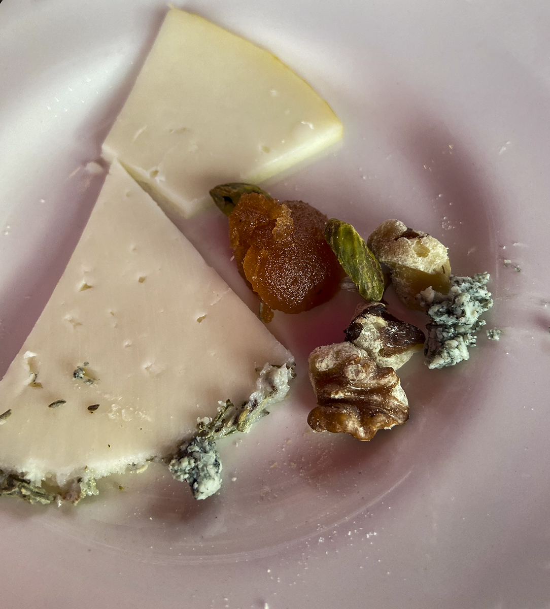 After finally figuring out what we should order, the food appeared in a timely fashion. For our first tapas dish, we had the incomparable cheese plate or the plato de quesos artesanales(20), which had some smoked gouda, sheep cheese, and a portion of blue cheese that made me vow never to become a vegan. The cheeses were served with some apples(maybe HoneyCrisp), walnuts, pistachios, grapes, dates, and quince. I was in heaven. This could have been my entire meal except that we were out with friends from out-of-town, so I had to share.