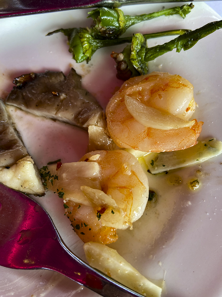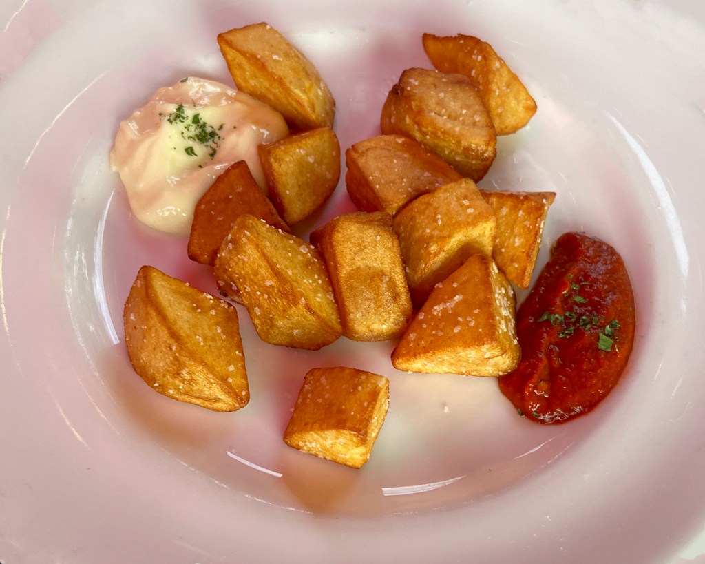 We had some delicious mushrooms that were perfectly cooked. I always have patatas bravas (spicy potatoes) whenever I go out for tapas. These patatas were exceptional! The dish was called patatas dos salsas(9) on the menu. The two sauces, a spicy red chile for dipping and a roasted garlic alioli. These sauces were incredible! I haven’t tasted sauces that were that nuanced in a long time. Wow! Ok, I didn’t want to share the potatoes either.