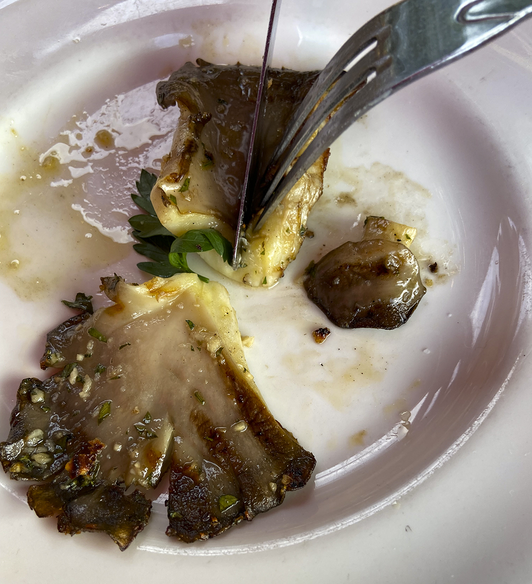 We also had the Mejillones el Meson( Black Mussels). So these are fresh Totten Inlet Black Mussels(16). I don’t know anything about mussels but they looked so delicious in a tomato broth with fresh herbs, that I had to try one. These incredible mussels were steamed in a white wine as well. I thought my mussel was delectable. We asked for more bread to soak up the tomato broth. Not me, I had enough with the one mussel.