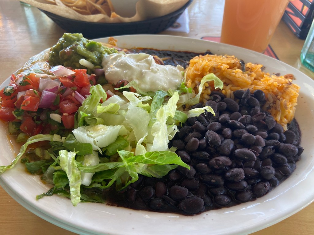 I had checked out the menu online so I knew I was getting the Northern New Mexican Enchiladas(12). Right on the menu they tell you that the corn tortillas are from Alicia’s. How could you go wrong? I love Alicia’s. (Note to self, I have to get back there). The second high note was the black beans. They were perfect. But also was the Spanish Rice. The rice was very moist and light. There were vegetables in the rice which is always another plus for me. I had Christmas because I couldn’t decide if I wanted red or green sauce. Wow! next time, I will be having the red. It had a wonderful punch to it. I really liked it. The pico de gallo, the guacamole, and the sour cream were all delightful as were the vegetarian enchiladas. Yum!!!