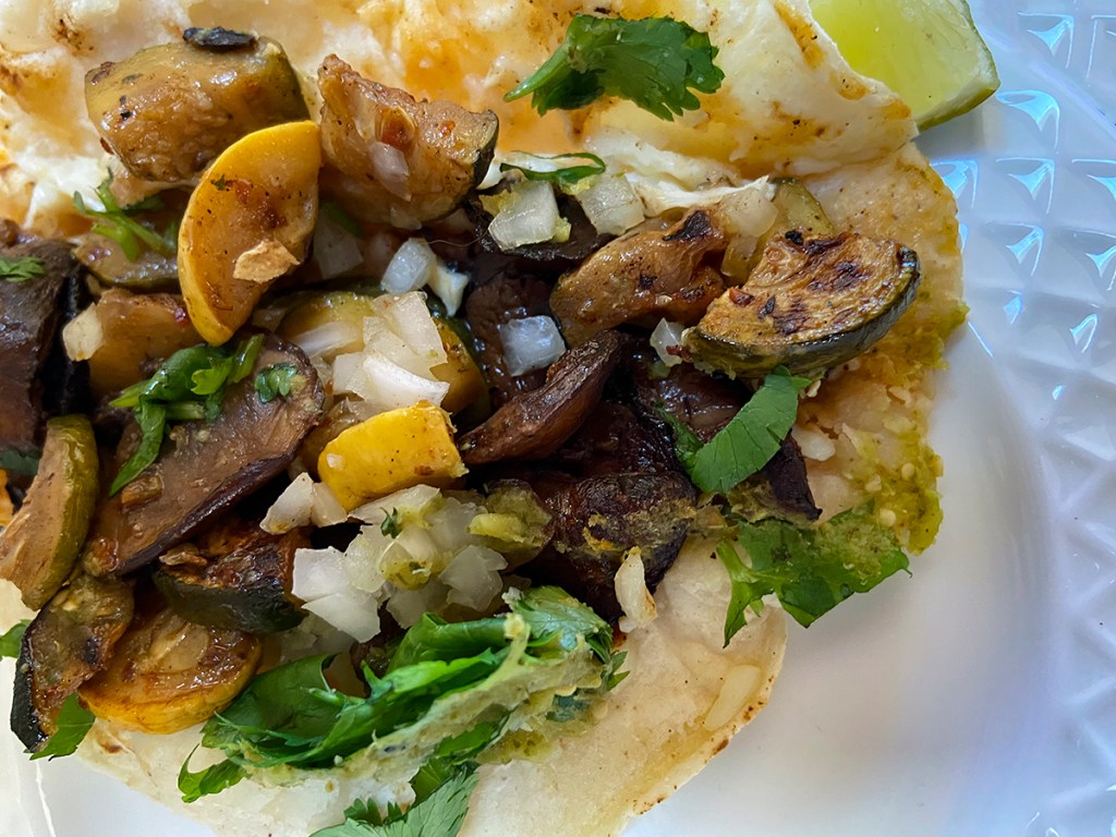 The portabella mushroom taco(3) had mushrooms, zucchini, squash, grilled eggplant, and Oaxaca cheese and some salsa. It was delicious as well. The vegetables were perfectly cooked and seemed to meld together. It was a delightful combination.