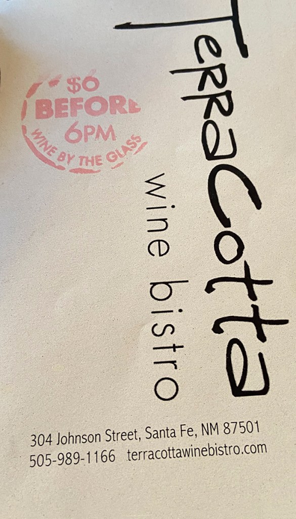 I really like this place. Unfortunately, we do not go here often. Since we haven’t been back to the Lensic Performing Arts Center, we haven’t been to Terra Cotta Wine Bistro in a long time. Terra Cotta stands on its own. The food is always exceptional. The wine list is one of the best lists in town. If you eat early this place is a hidden gem. We were able to get reservations on a day’s notice just because we tend to eat early. But you always need a reservation, Believe me, the place was appropriately packed when we left the restaurant.