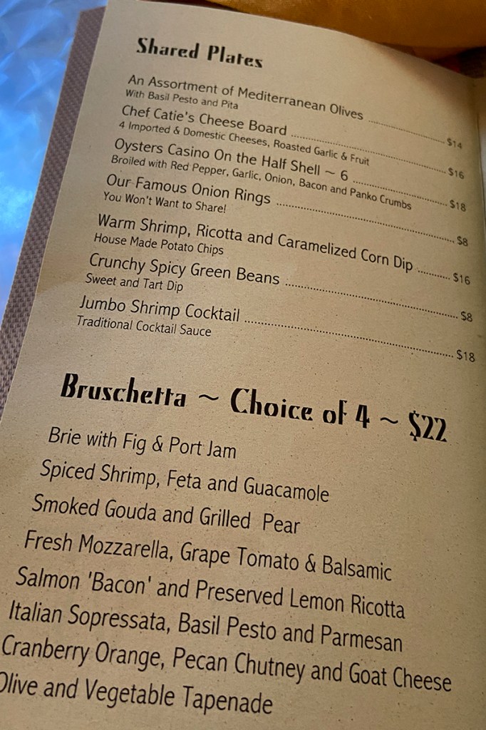 I had a sip of a lovely Spanish Rose. It went well with all of our entrees. Terra Cotta Wine Bistro has an extensive wine menu. I mean it is several pages of interesting wines. So many choices…