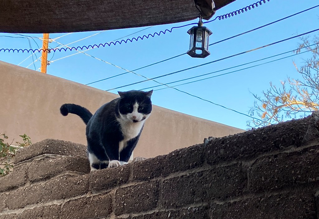 Since there were 6 of us, and our hosts came early, they were able to secure a nice secluded area on the patio. We did have one visitor who seemed to check up on us.