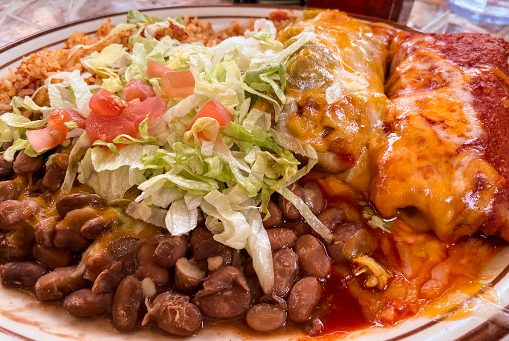 I thought that the spinach was a little over cooked but that could be just me. As you can see the enchiladas were also done in a Christmas sauce.