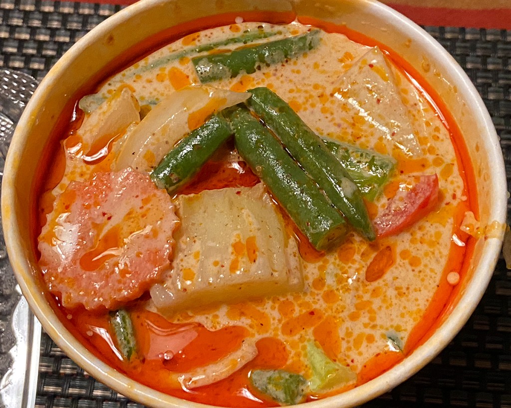 Here is a close up of our curry on the delicious Jasime rice. The vegetables were perfectly cooked.