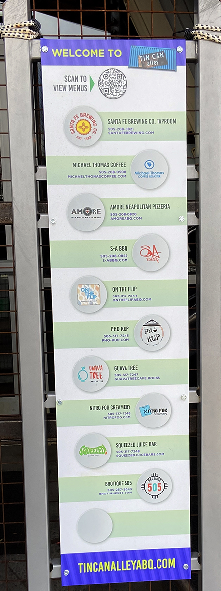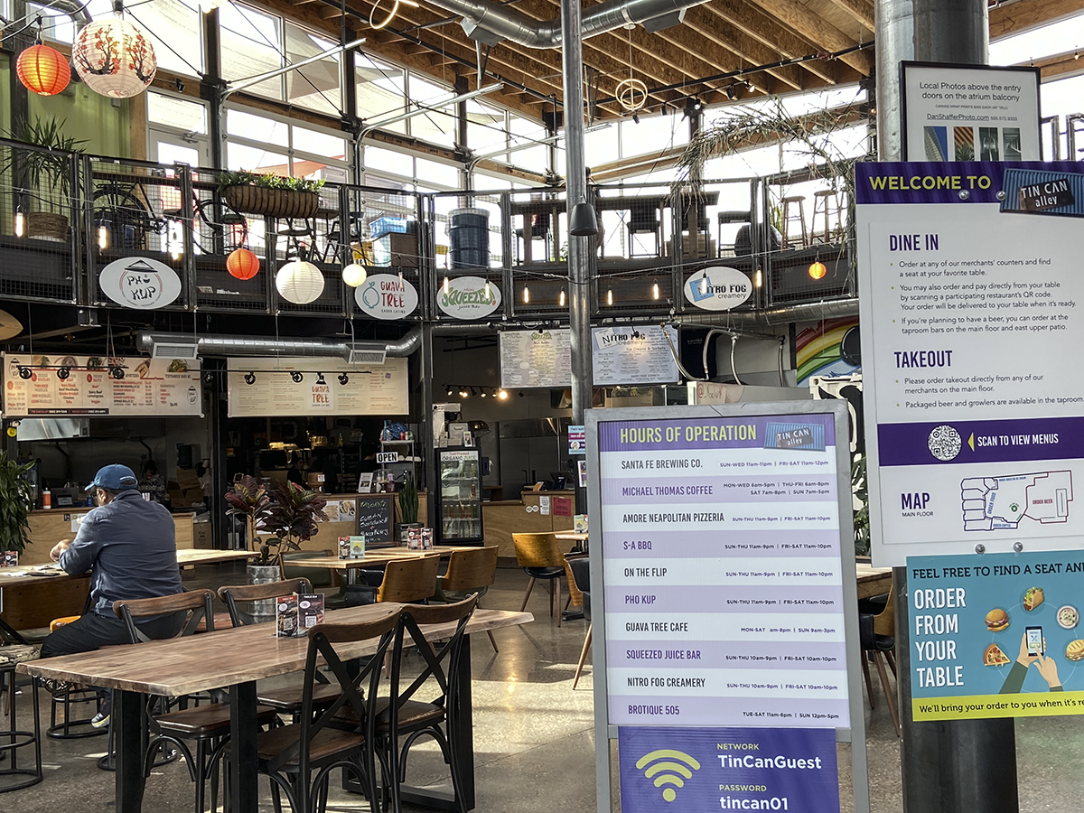 I have wanted to go to Tin Can Alley. I knew that Santa Fe Brewing was a store anchor but I didn’t know much else. I like the concept of using shipping containers for buildings as they did at Green Jeans Food Hall, in Albuquerque. A friend of mine said check out the Guava Tree in Albuquerque. Ok, there are two Guava Tree locations one at Tin Can Alley the other on Nob Hill. I chose the Tin Can Alley location.