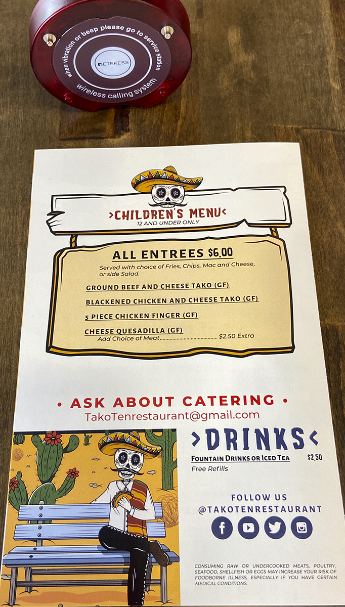 The website keeps telling me that the Tako Ten on Candelaria is closed. I don’t know. The Tako Ten on Montgomery is open Sunday-Thursday 11am-8pm, Friday-Saturday 11am-9pm