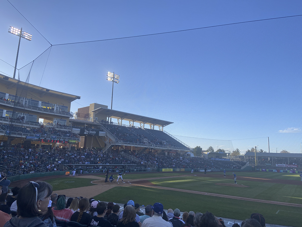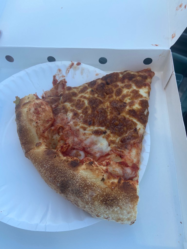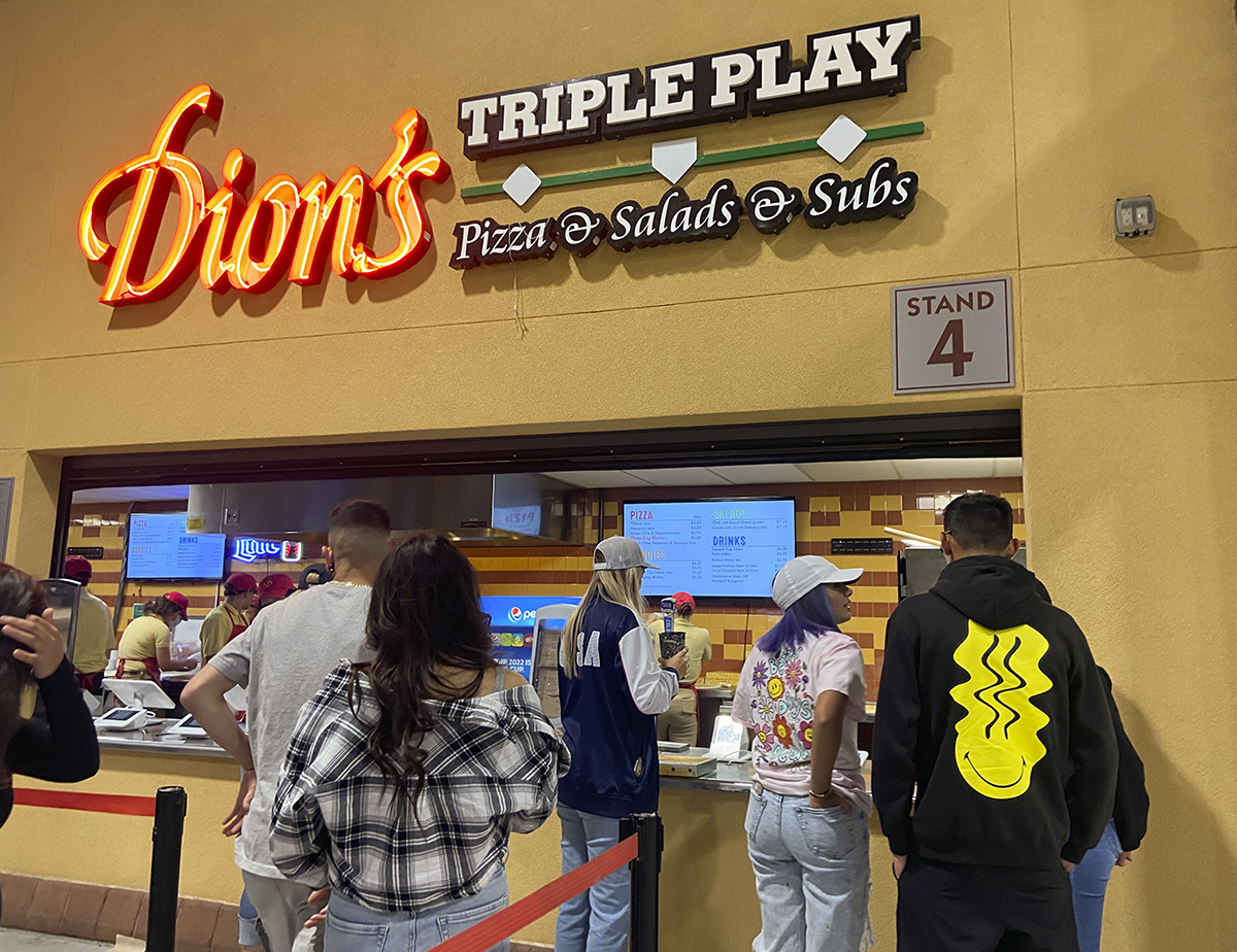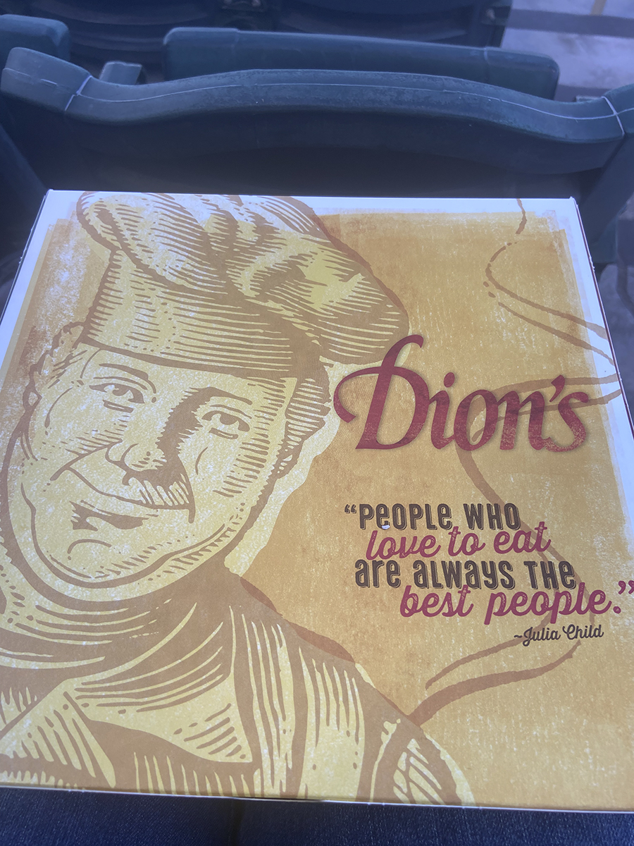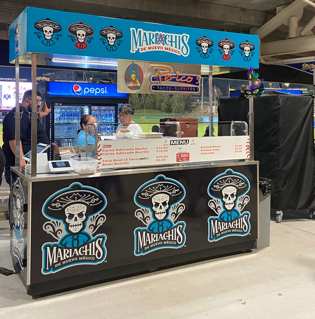 We decided to try some of the food at the Albuquerque Isotopes Ballpark or as the official name is: Rio Grande Credit Union Field at Isotopes Park. Since we were still new to the park, I looked up articles about the Ballpark. Apparently awhile ago, this ballpark was very vegetarian friendly. One article said that because of Lisa Simpson, who is a fictional character on the Simpson’s, was a vegetarian, there were lots of vegetarian options. So far, I found two. First was the bean burrito(6) at Perico’s and the cheese slice of pizza(5.25) at Dion’s. Ok, Dion’s has a salad as well. But who eats a salad at a ballgame. Come on. No salads for me. A salad doesn’t work with a beer at a ballgame, that is just wrong. My personal opinion.