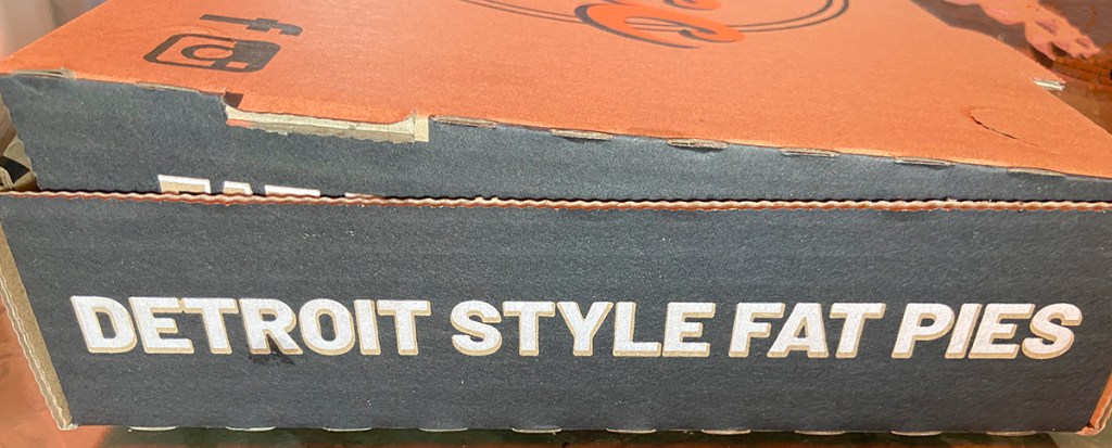 This is the box that this delicious pizza comes in. At Thicc Pizza Company, you can only order an entire pizza. The Box looks small but just like Chicago Pizza, Detroit pizza is packed full of goodness. I can only eat two slices at a time and that is when I am starving. There are also salads and soda pop on the menu here but I was only interested in the pizza.