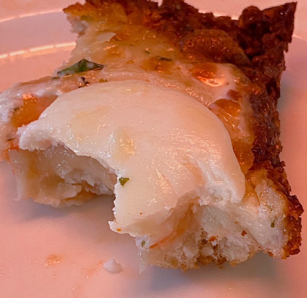 Just look at that burrata cheese with a sprinkle of fresh basil. I wanted you to see this beautiful sight before I demolished this pizza slice.