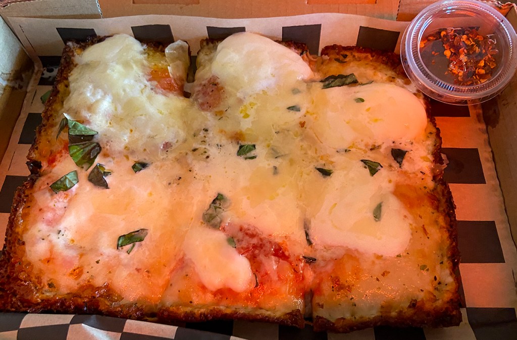 In the 505 Central Food Hall in Albuquerque, I found Thicc Pizza Company. I had been looking for a good Detroit Pizza ever since Door 38 Pizza forgot to process my online order. Yea, that was not good. I waited around until they did make me a pizza but I haven’t been back since.