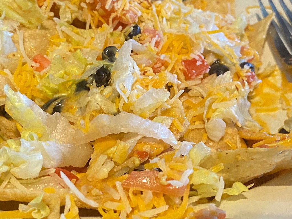 I ordered the nachos(9) without meat. The chips were covered with green chile cheese sauce so there was enough cheese to land on most of the chips. The sauce was also delicious! The lettuce was crisp and really added to the taste of the nachos. The tomatoes and black beans were worthy additions to this delicious concoction. You were given a small cup of jalapenos so you could place them.