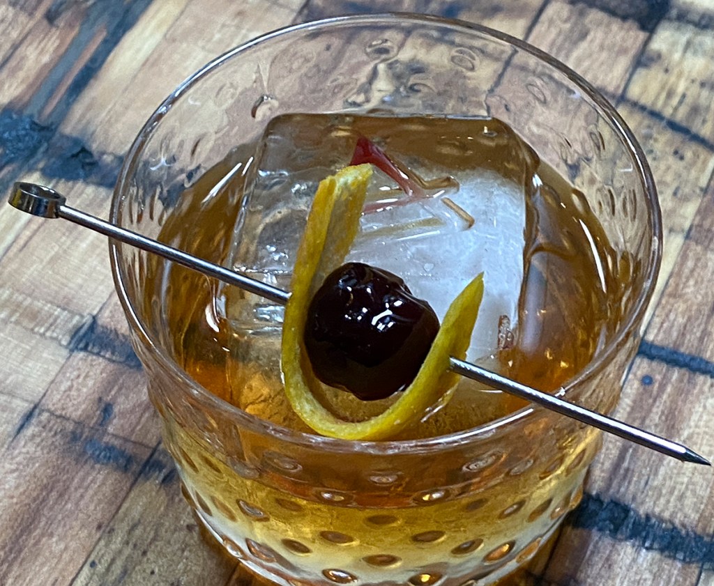 This Negroni(13) was made with Altar’s Sigil gin, vermouth and some of the house-made amaro. It was beautiful to look at but better to taste. If you look closely at the ice cube, you might be able to see the red A in the ice. This special touch could probably be seen better in my drink, the New Old Fashioned(13).