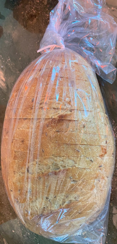 But my focus was on bread, especially rye bread. The description was so inviting. “A traditional Jewish rye bread with caraway seeds. Here we recreate the bread found in the bakeries of Brooklyn at the turn of the century.” Wow! who could resist that. And this slice of heaven was only 5.95. Speaking of sliced, you have the option of having your bread sliced or whole.