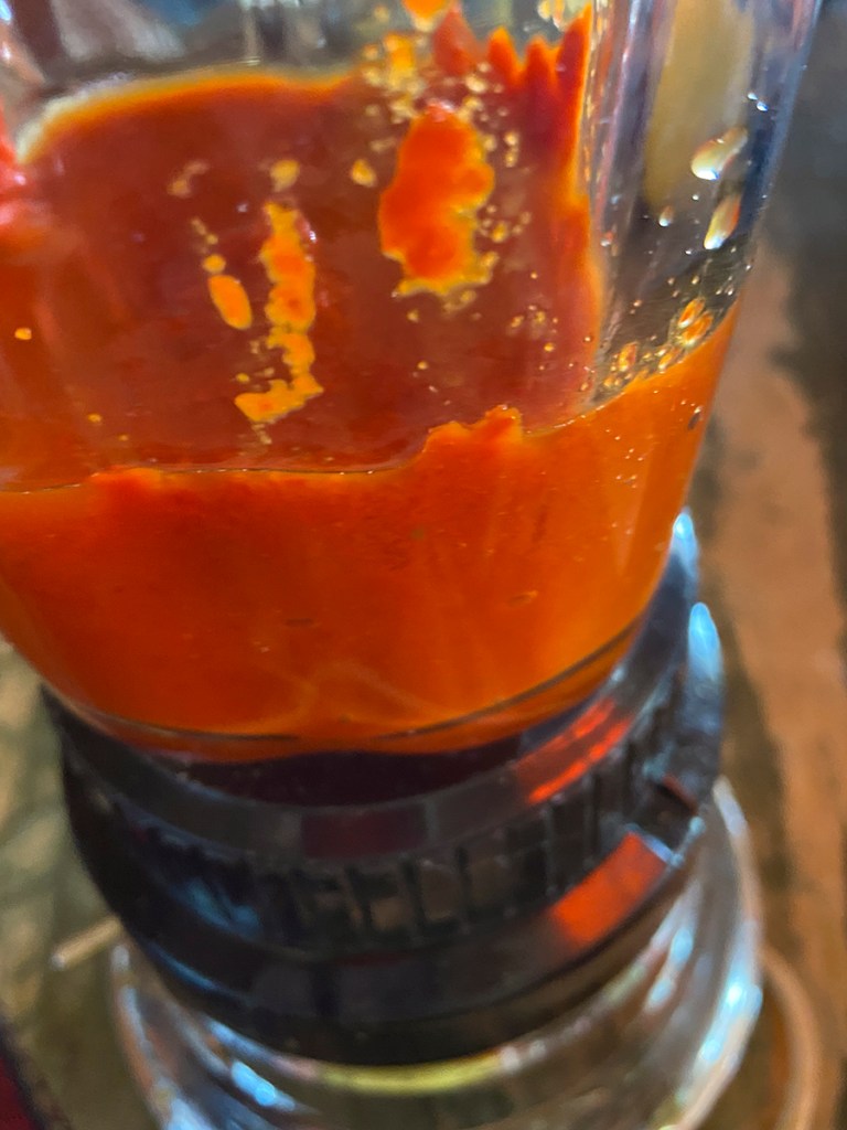I just pulsed the blender and made sure that the peppers were being blended into the other ingredients.
