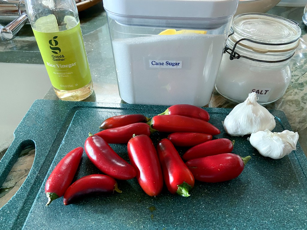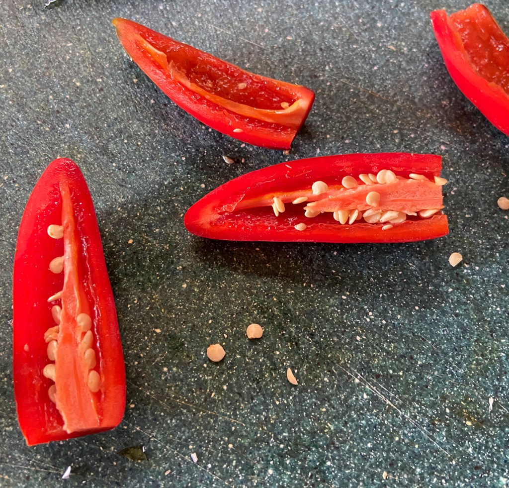 I’m sure that you can add a couple of green peppers but I had enough red peppers. I think that these are actually jalapeño peppers but that didn’t really matter. In the video, Grant used different peppers than I did. I would suggest that you use local peppers.