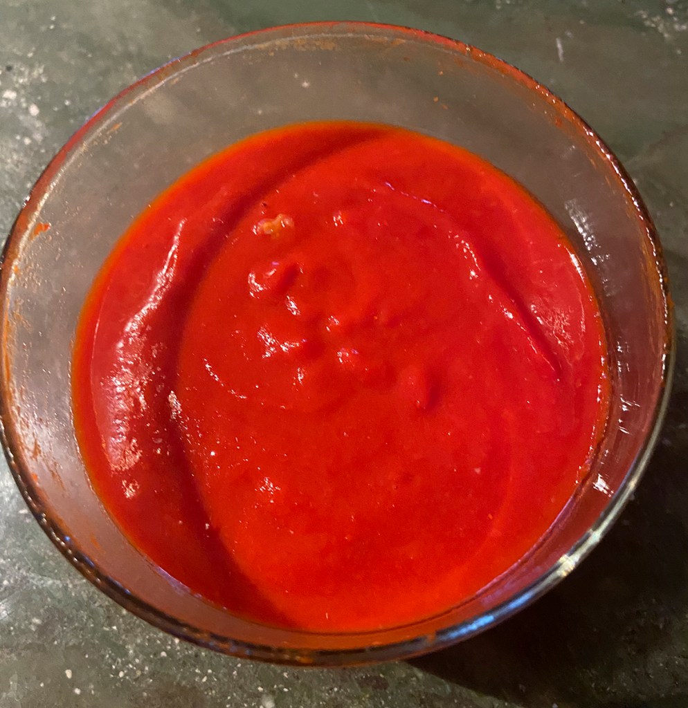 Grant added another tablespoon of sugar. I have added enough sugar for my sriracha. But I did need to add 3 tablespoons of rice vinegar. If you don’t happen to have rice vinegar, white vinegar with do.