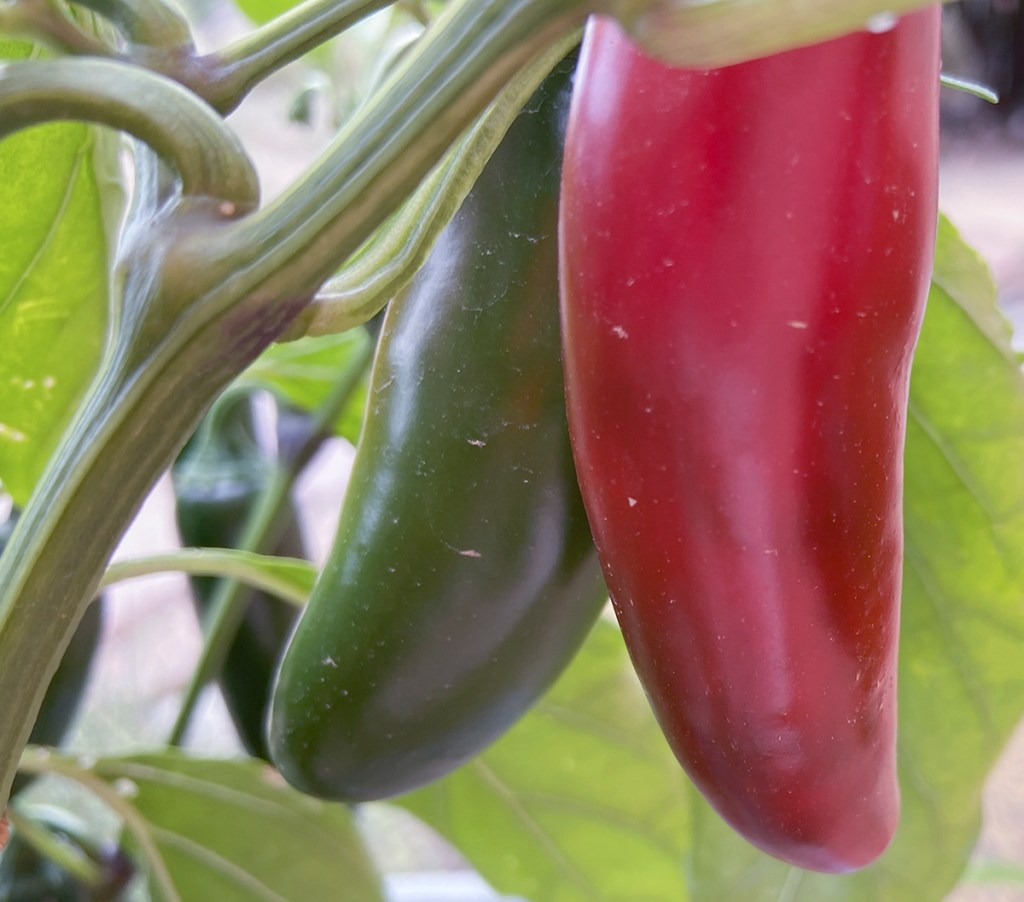 Every year I grow peppers. It seems that I also have an abundance of jalapeno peppers every year. I usually cut them up and freeze them. This year I bought some peppers from Alameda Greenhouse in Albuquerque that stated that these peppers were sriracha peppers. Great! I love sriracha. I’m not so great about cooking but I sure can grow peppers.