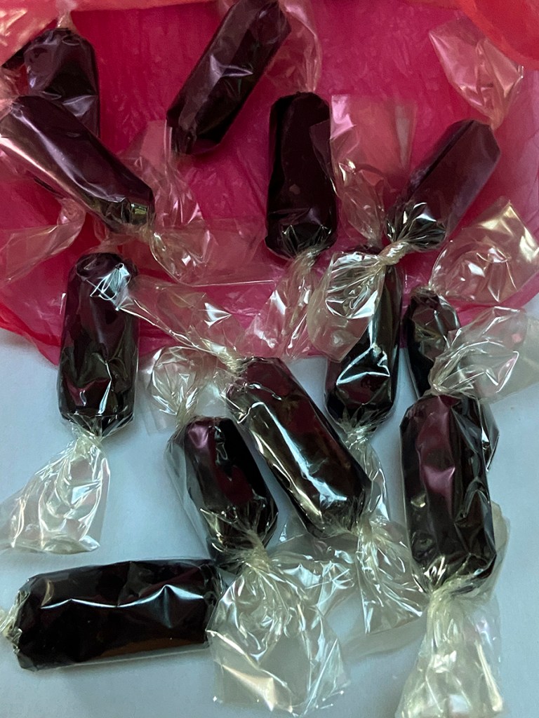 I am particularly fond of blackies (19.95lb). The Candy Lady’s specialty licorice. I love them. Blackies are very addictive so watch out. They are some of the best licorice I have ever had. This is a very hot item so at Christmas time, I call ahead to make sure that they are in stock. I’m not opening the wrapper because I promised to give these tasty morsels away. I could eat an entire bag of them. They are just so creamy, fresh, and delicious. The same goes for the peanut butter crunch.